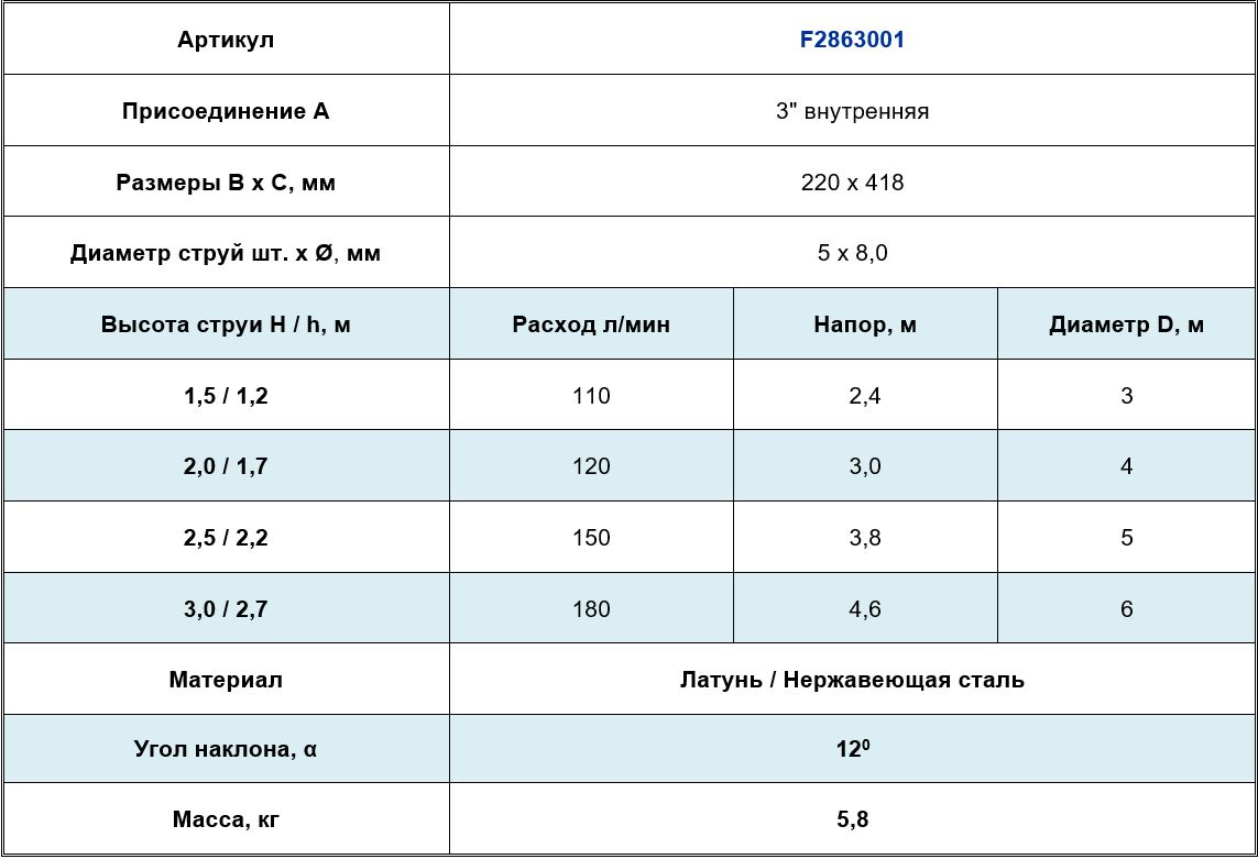 Высота струи max, м